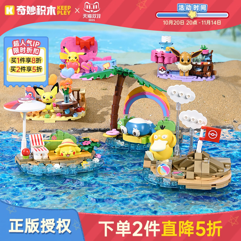 奇妙积木Keeppley宝可梦场景模型皮卡丘玩具卡比兽拼装摆件礼物
