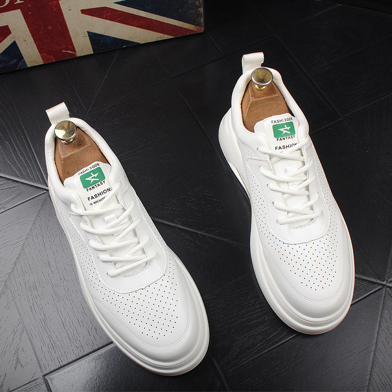 夏季新款小白鞋男韩版百搭增高鞋气垫潮流男鞋真皮透气厚底男板鞋
