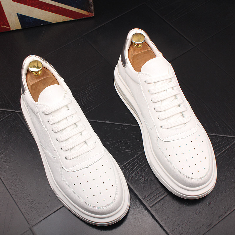 皮鞋男真皮透气潮流板鞋头层牛皮时尚韩版气垫底厚底休闲增高男鞋