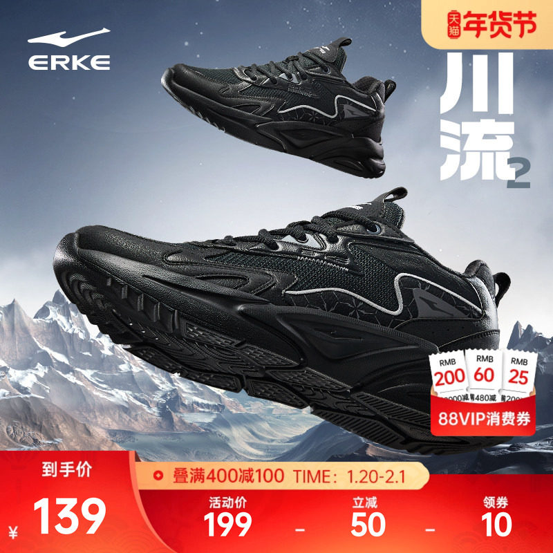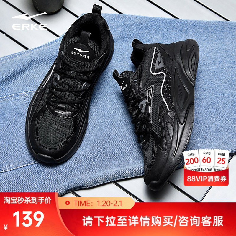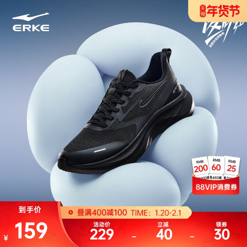 凌速鸿星尔克男鞋运动鞋冬季新款轻便软底跑步鞋黑色减震爸爸鞋子