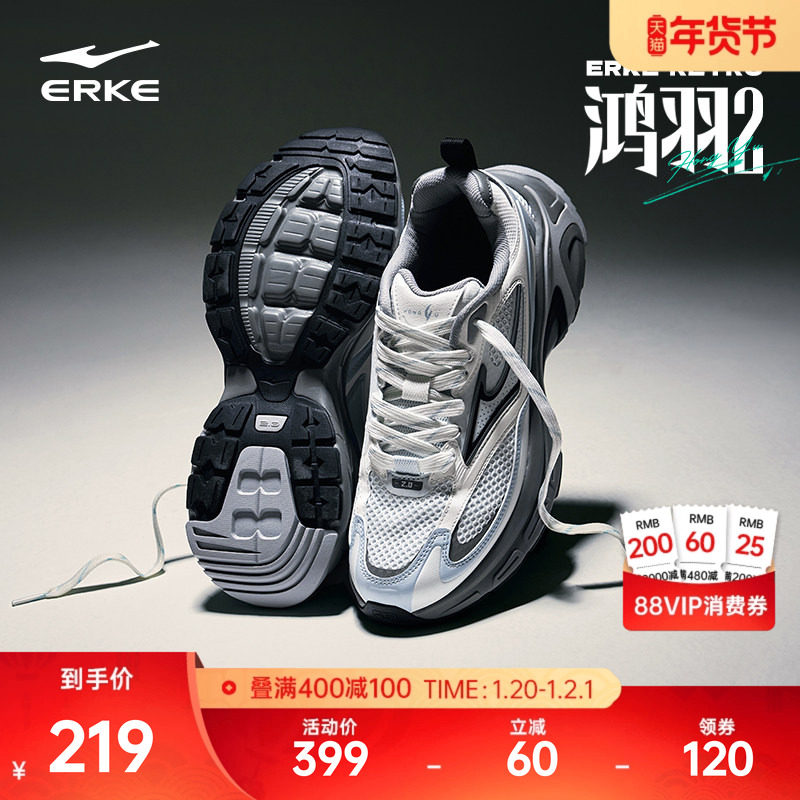 于适同款鸿羽2鸿星尔克男鞋休闲鞋秋冬厚底运动鞋复古千禧老爹鞋