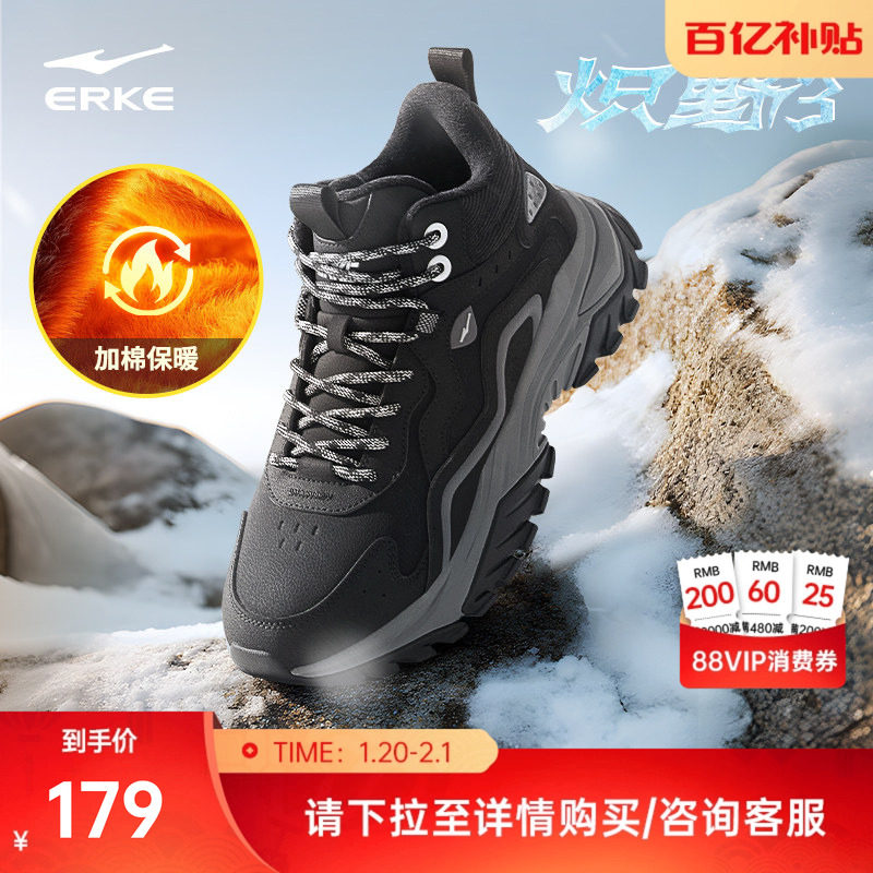 鸿星尔克炽野男鞋冬季中高帮大棉鞋保暖北方加厚加绒雪地靴运动鞋