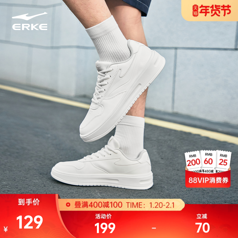 鸿星尔克板鞋男鞋冬季新款白色休闲鞋子轻便男款运动鞋厚底小白鞋