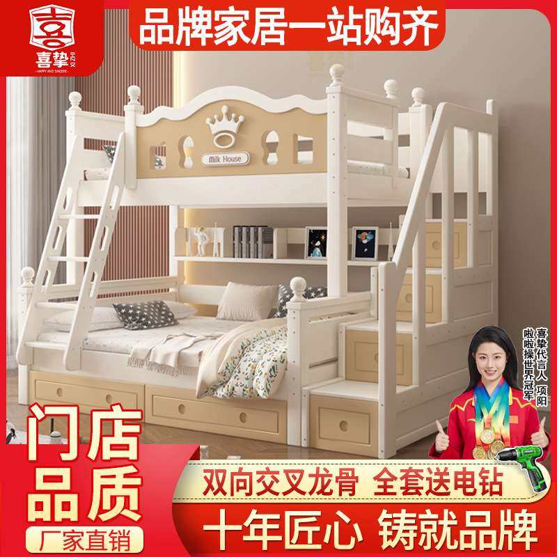 喜挚橡胶木上下床实木高低床双层床上下铺床儿童两层床成人子母床