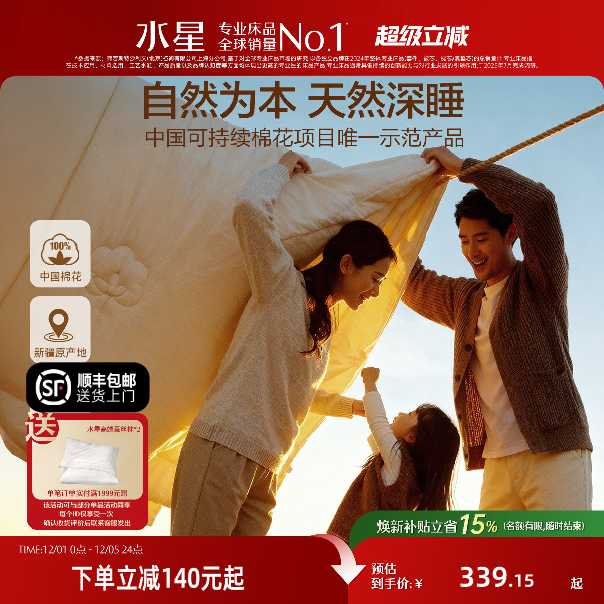 水星家纺A类全棉抗菌棉花被冬被保暖新疆棉春秋被芯被子四季床品