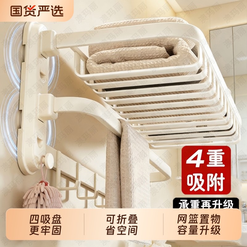 吸盘毛巾架卫生间免打孔壁挂式浴室置物架可折叠厕所浴巾收纳挂架