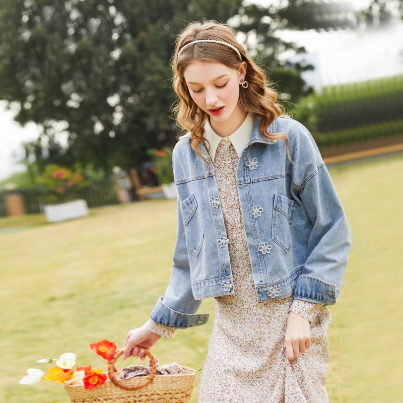 zk lin盘扣牛仔外套个性女小个子2025春秋新款韩版宽松巨好看上衣