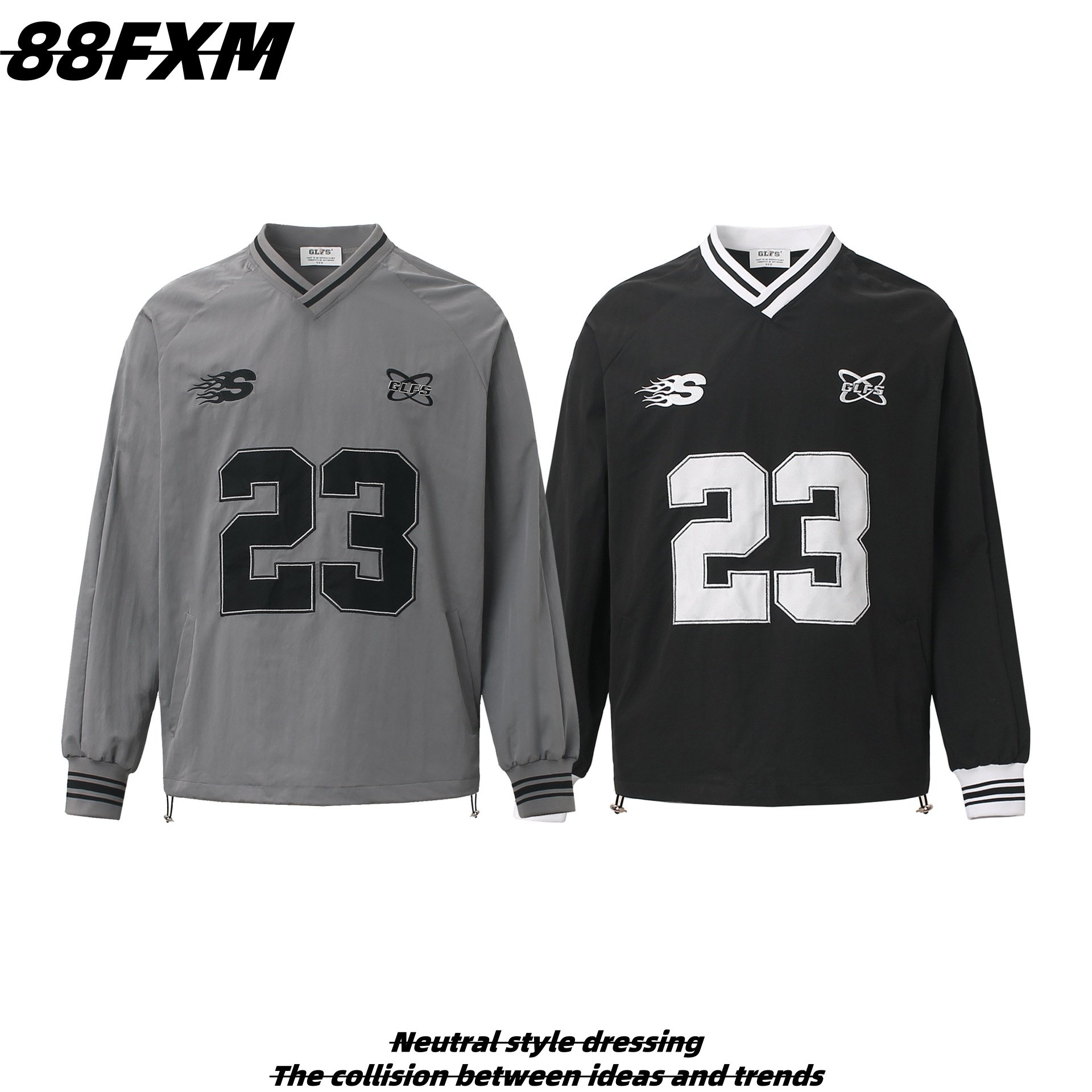 88FXM美式复古V领刺绣球衣长袖T恤男女vintage宽松休闲棒球服上衣