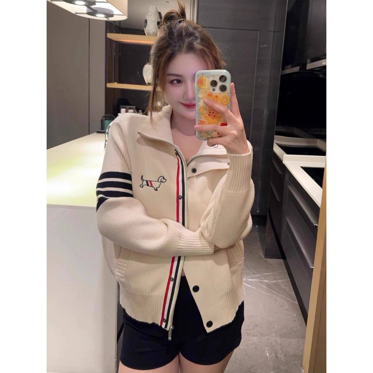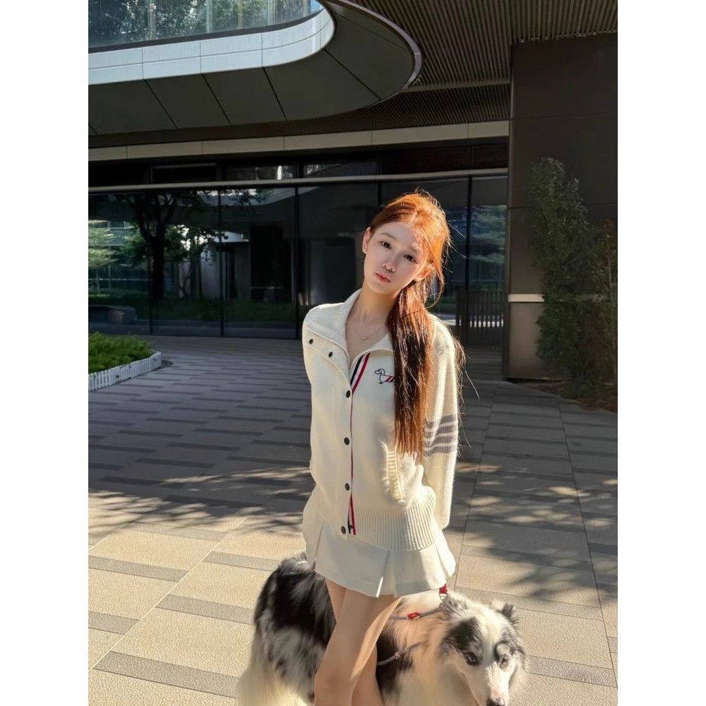 2025秋冬新款学院风tb小狗刺绣针织棒球服开衫翻领长袖毛衣外套女