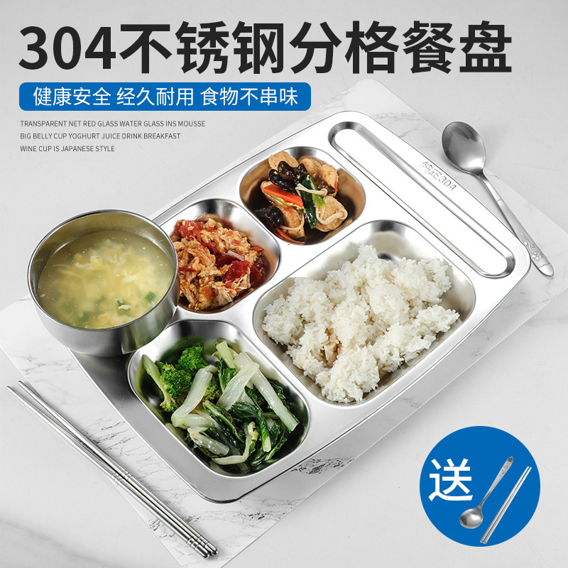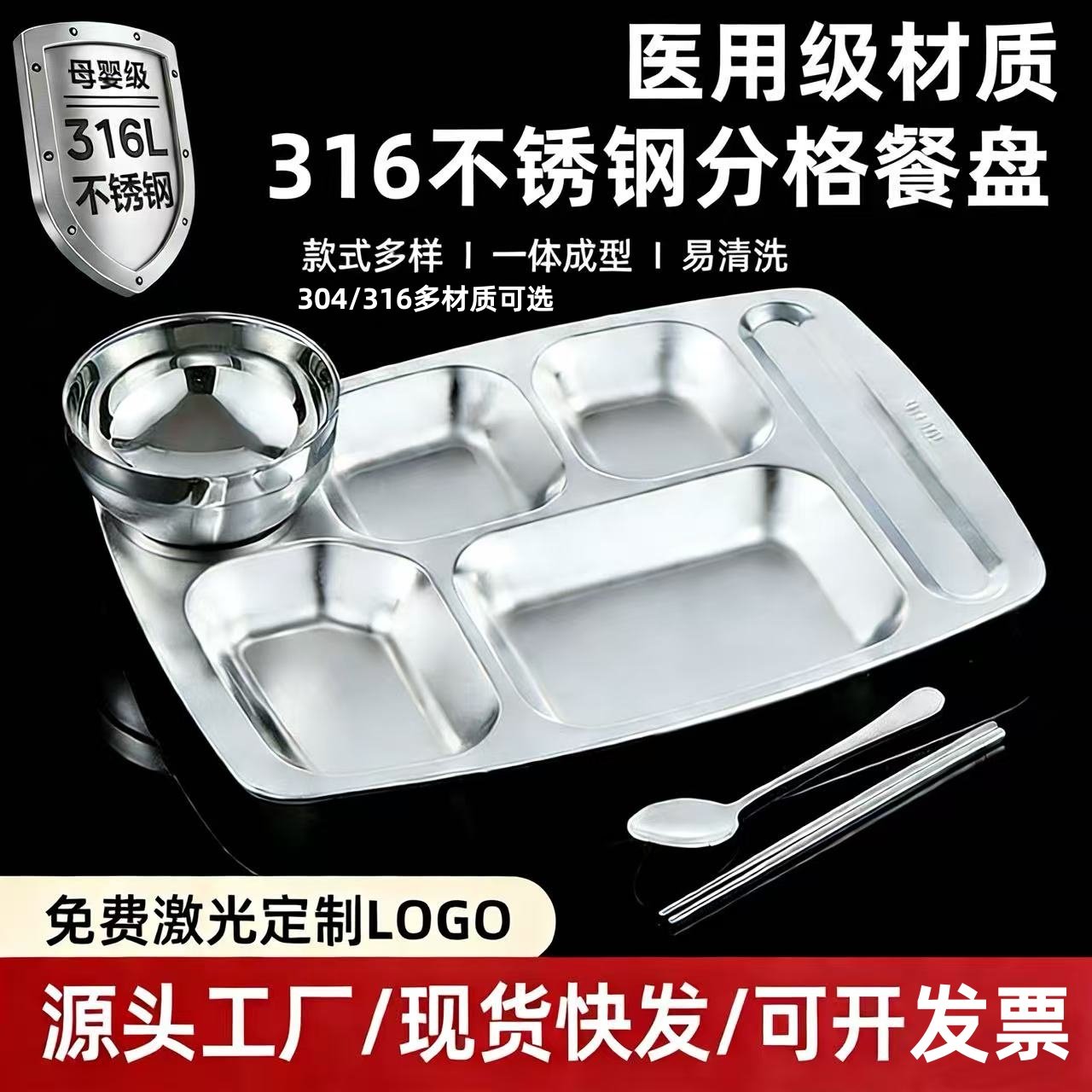 抗菌316不锈钢快餐盘成人五六格学校公司大学生食堂餐具加厚分格
