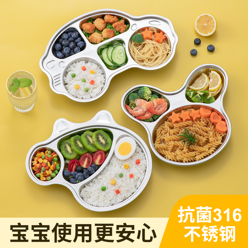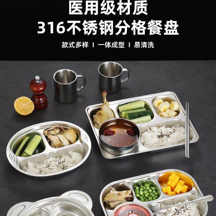 抗菌316不锈钢快餐盘分格儿童食堂食品级女孩男孩分餐宝宝 幼儿园