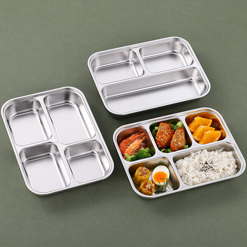 304不锈钢餐盘方形四格五格快餐盘成人学生食堂加厚餐盒分格饭盒