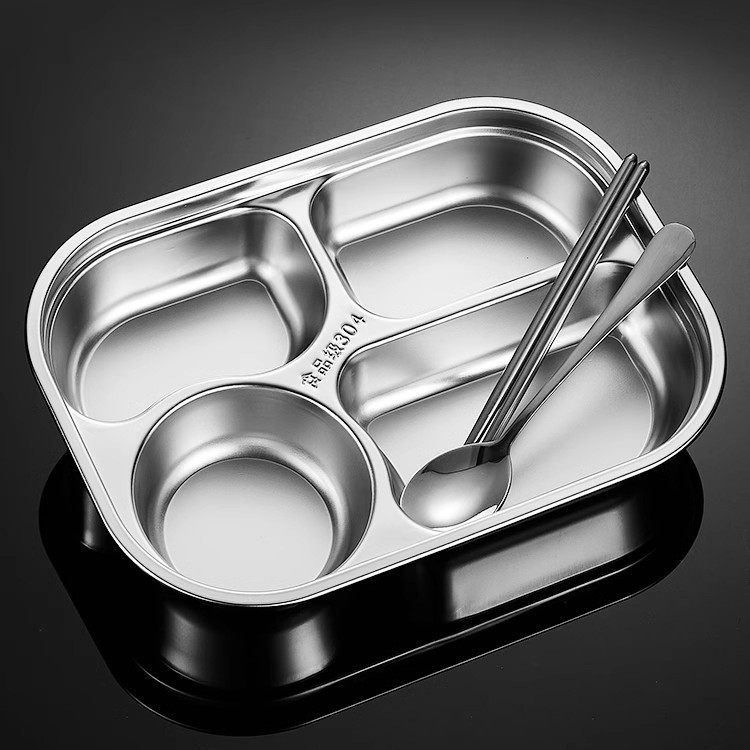 304不锈钢快餐盘分格学生儿童餐盘食堂饭盘成人家用三格四格五格