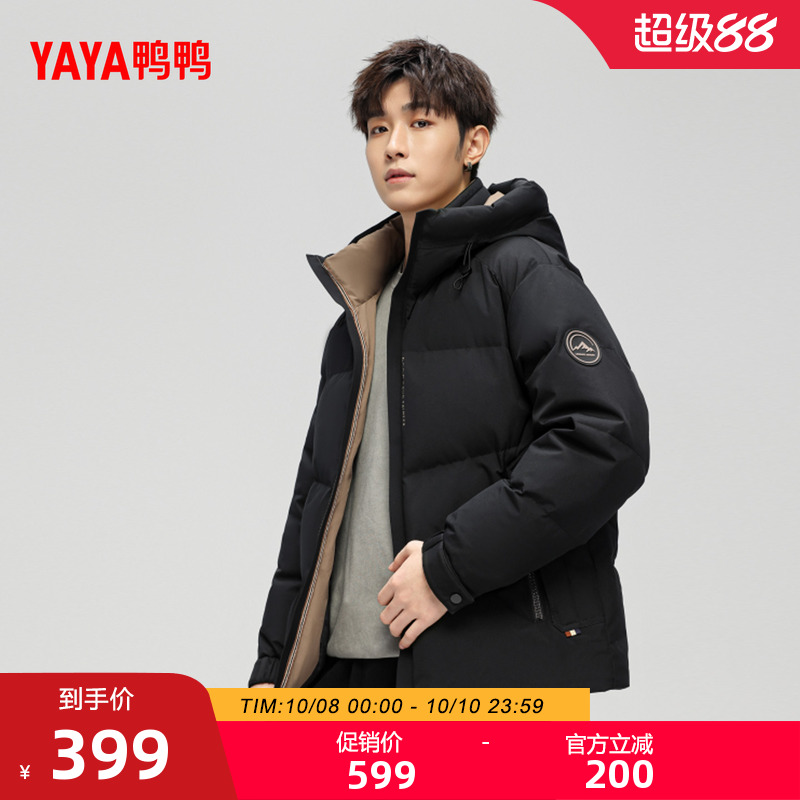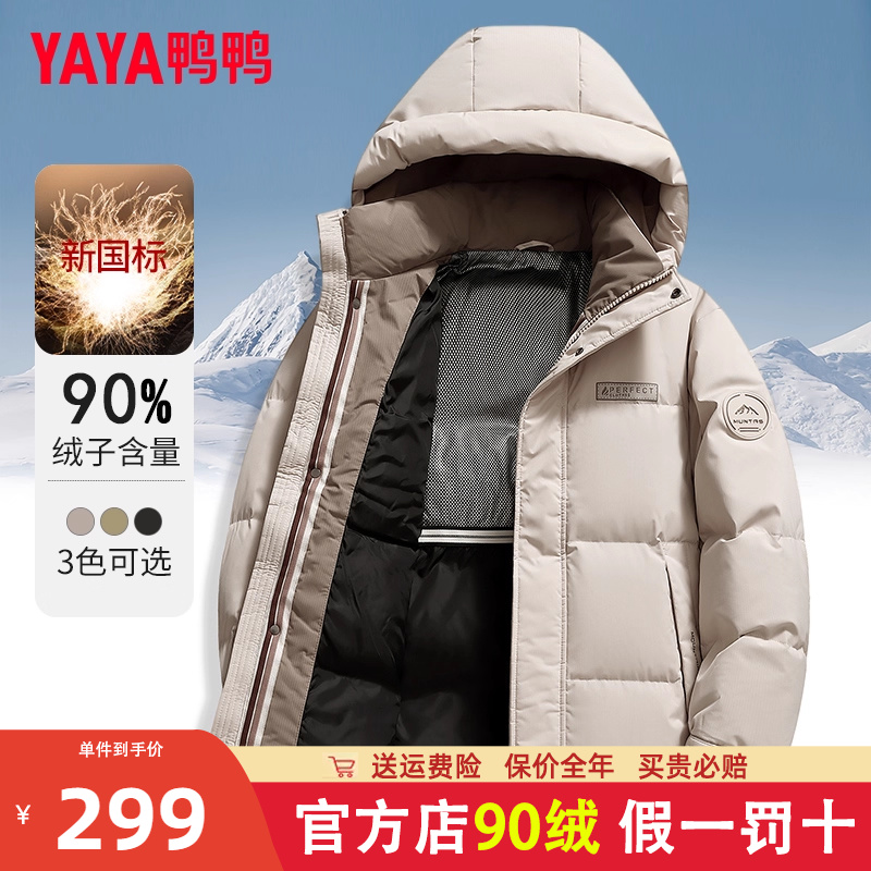 鸭鸭男士羽绒服2025年秋冬季新品商务休闲短款连帽加厚保暖外套Y