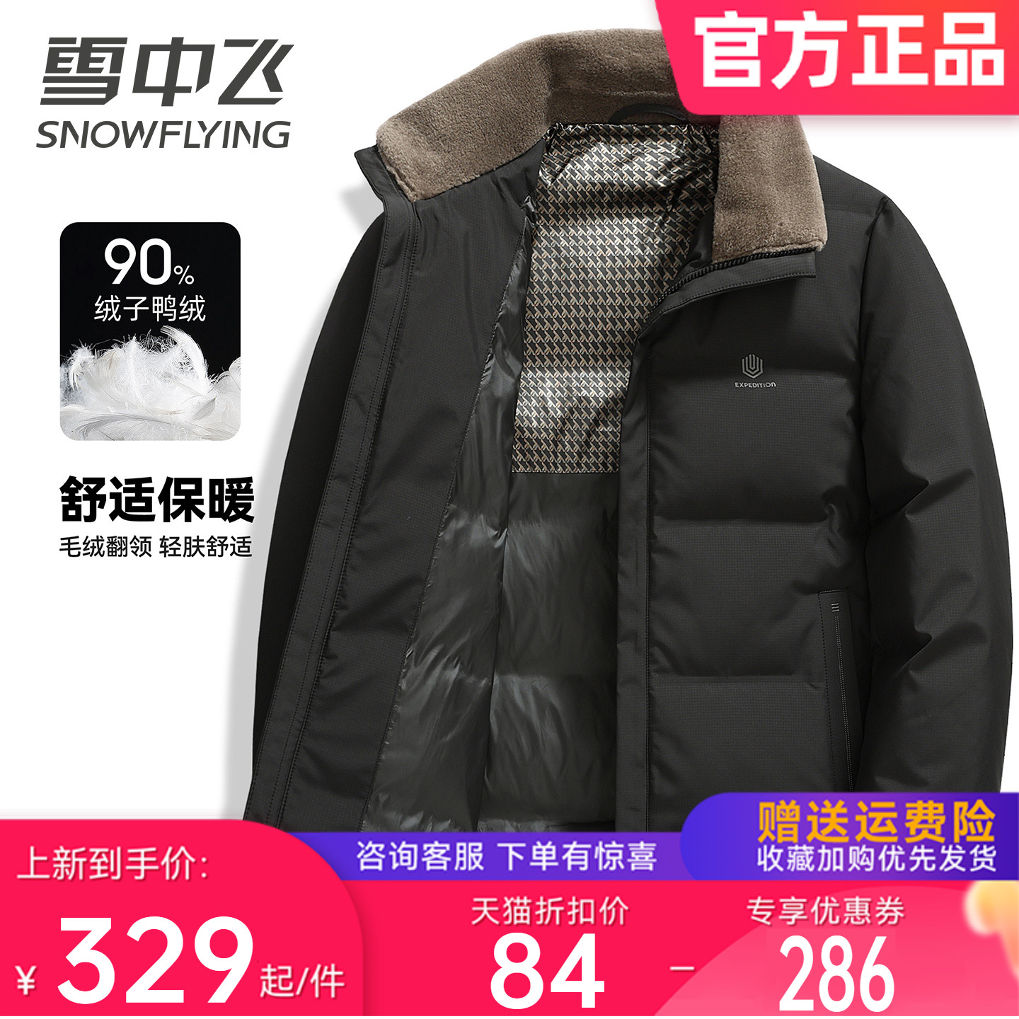 雪中飞男士中老年羽绒服短款2025年新冬季翻领爸爸装商务休闲外套