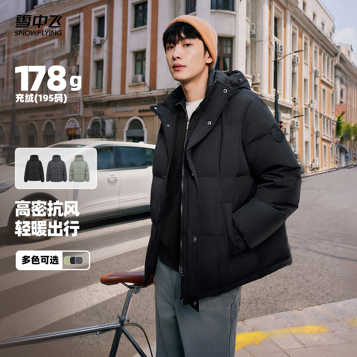 雪中飞2025冬新款男士短款羽绒服连帽简约百搭商务保暖休闲高级