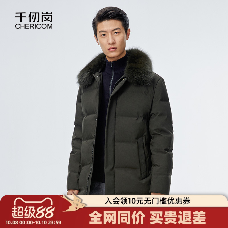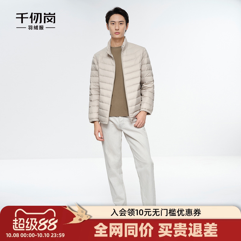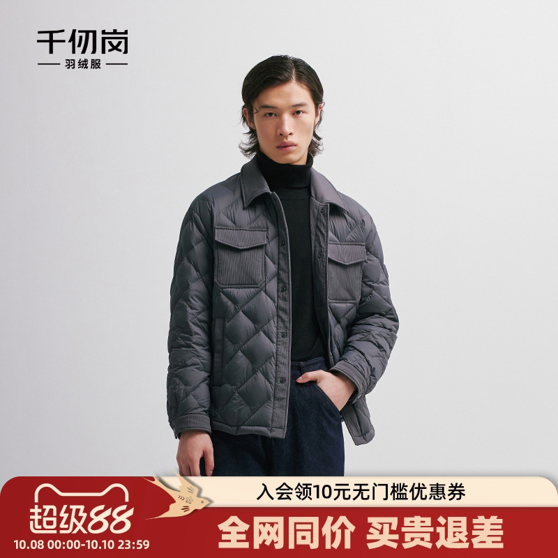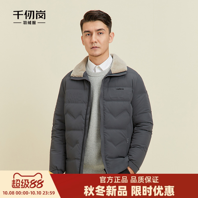 千仞岗男士短款夹克羽绒服时尚休闲羊羔毛翻领商务休闲柔软羽绒服