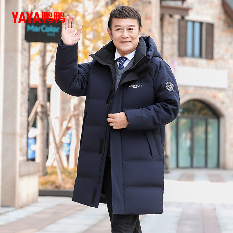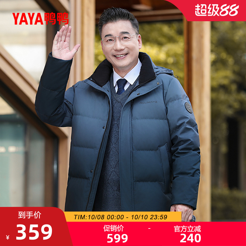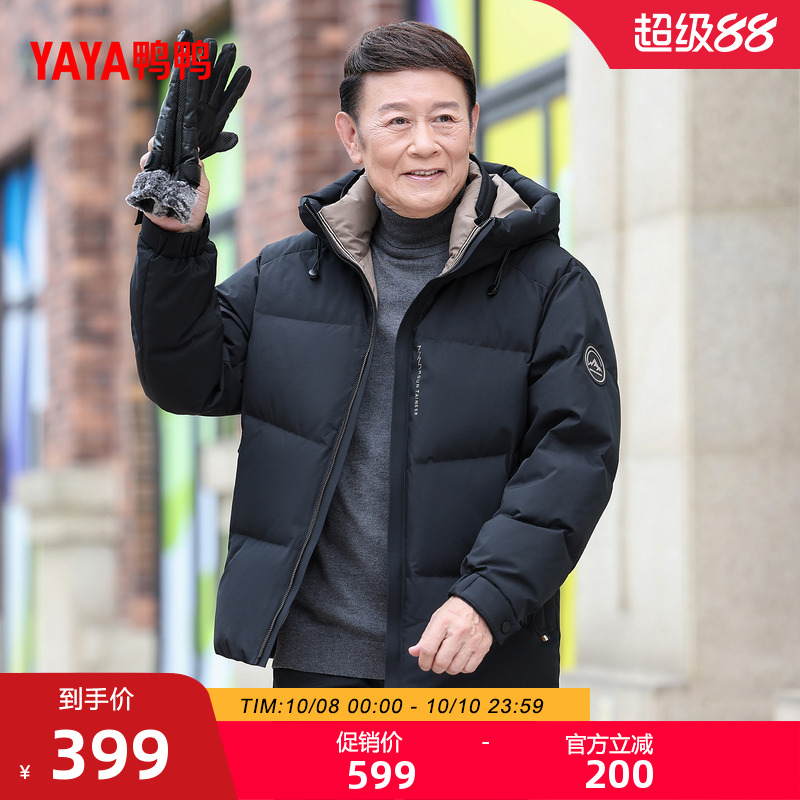 鸭鸭羽绒服男士短款2025年反季连帽中老年商务休闲爸爸装鸭绒外套