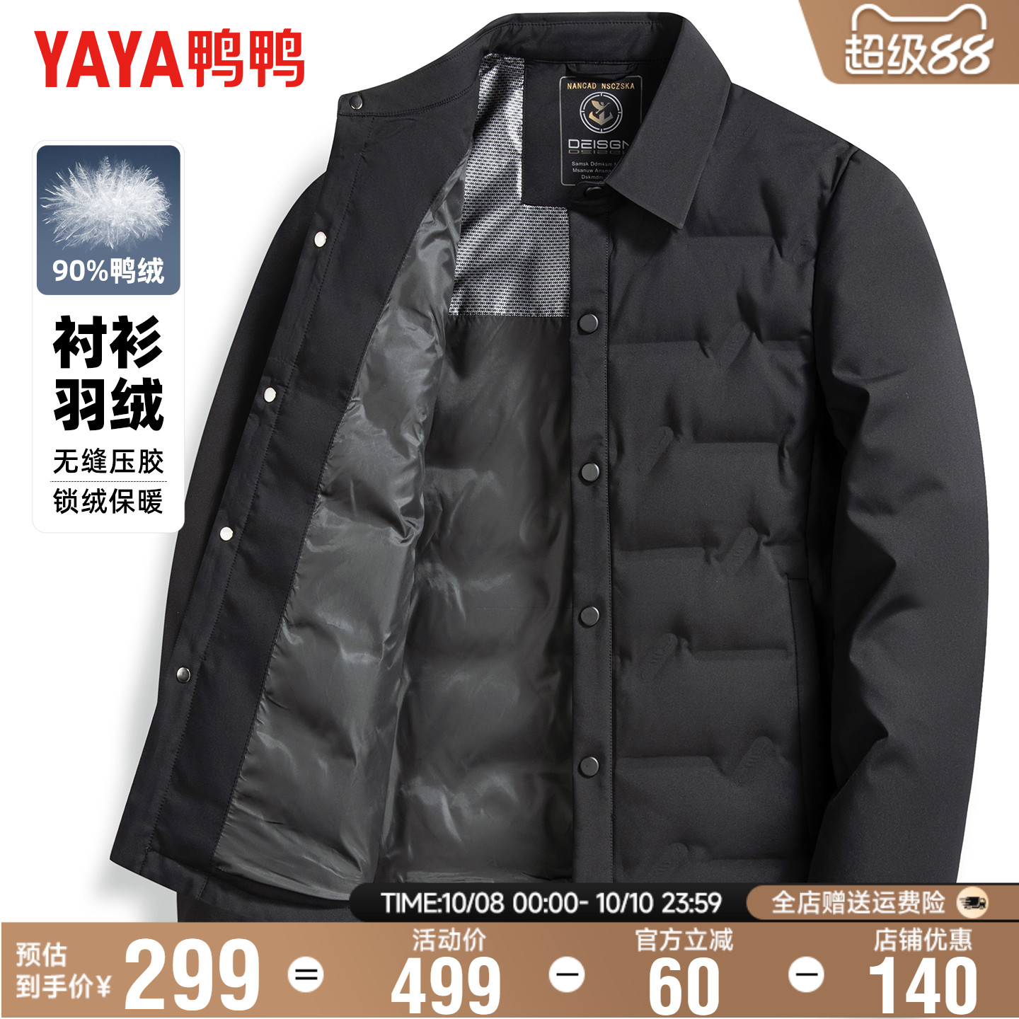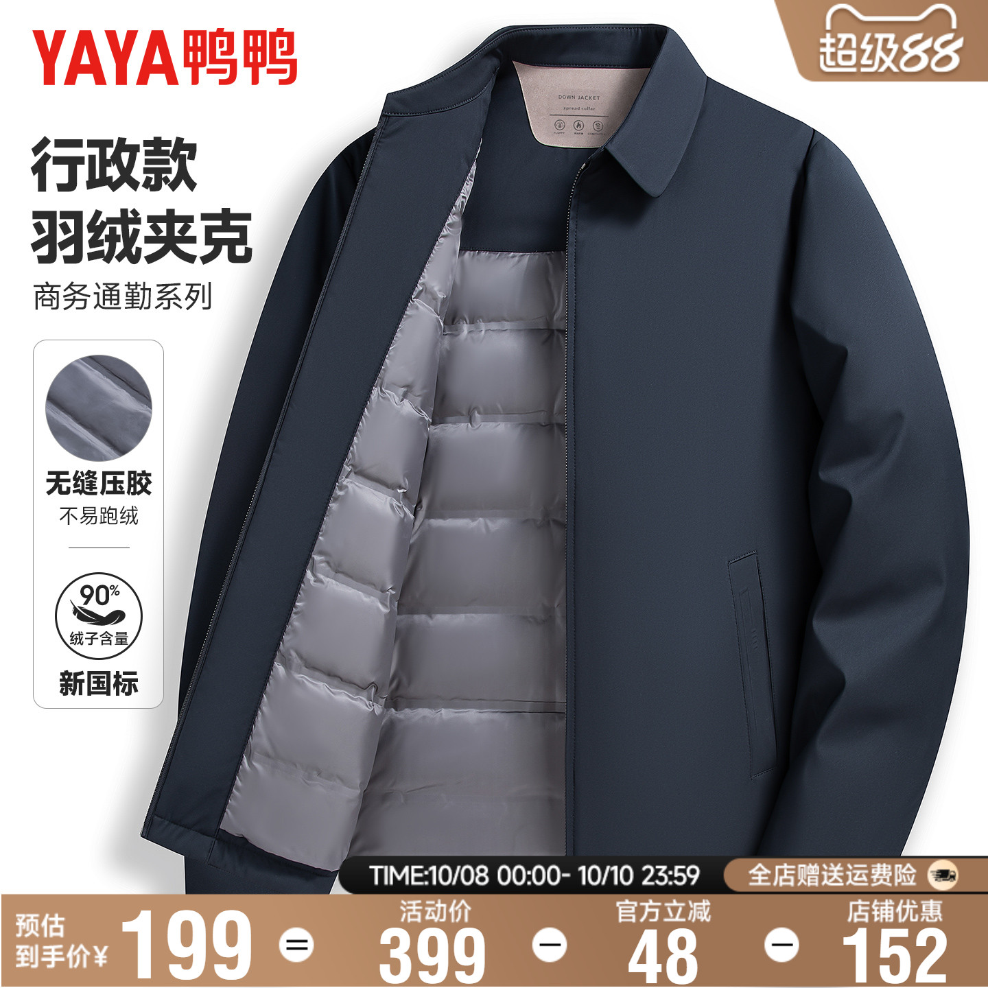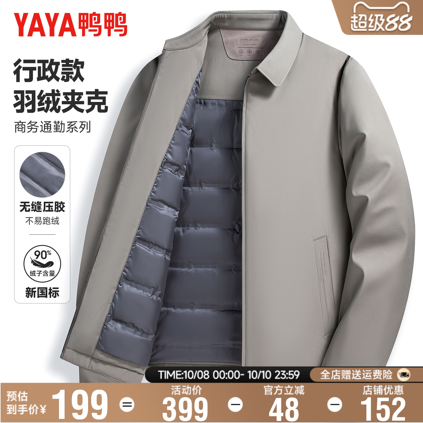 鸭鸭羽绒服男2025年秋冬反季短款商务休闲鸭绒外套中老年爸爸装D