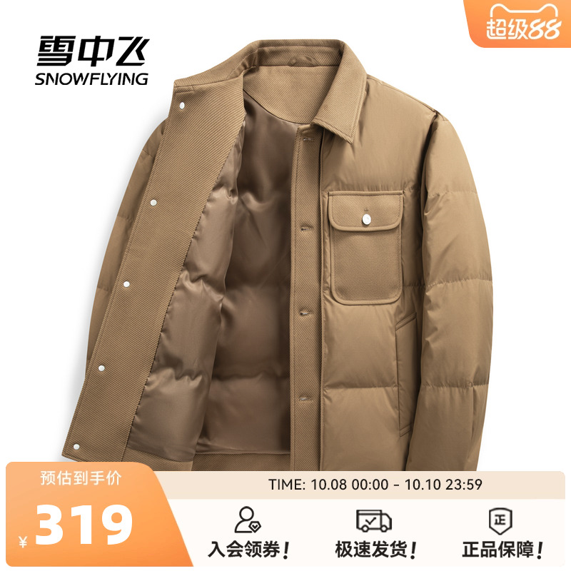 雪中飞2025冬新款男士短款简约翻领夹克羽绒服挺括商务休闲行政风