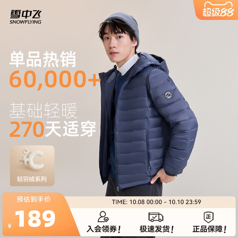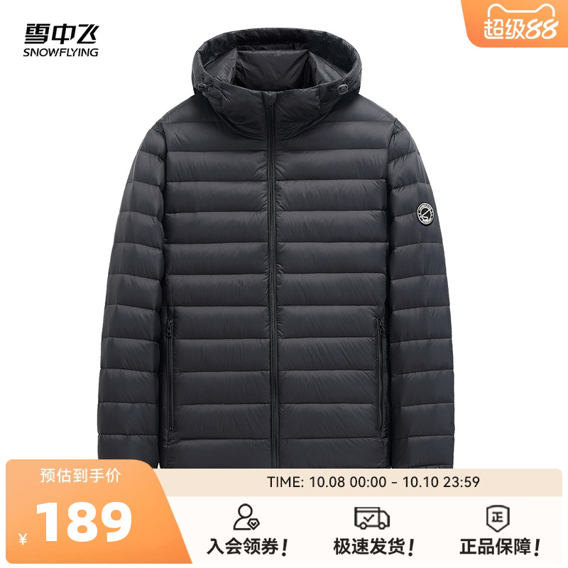 雪中飞2025冬新款男士短款连帽轻薄羽绒服纯色简约分格商务休闲