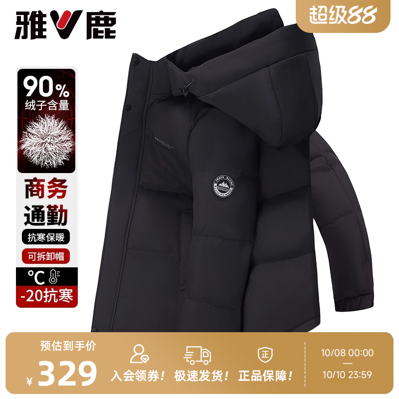 雅鹿休闲商务羽绒服男短款加厚2025冬季新款可拆卸帽防寒保暖外套