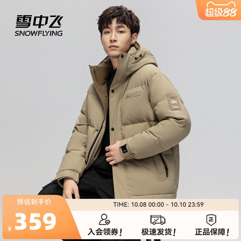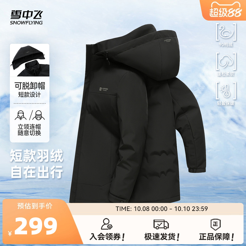 雪中飞羽绒服男士高端连帽短款中青年秋冬季休闲商务防风男装外套