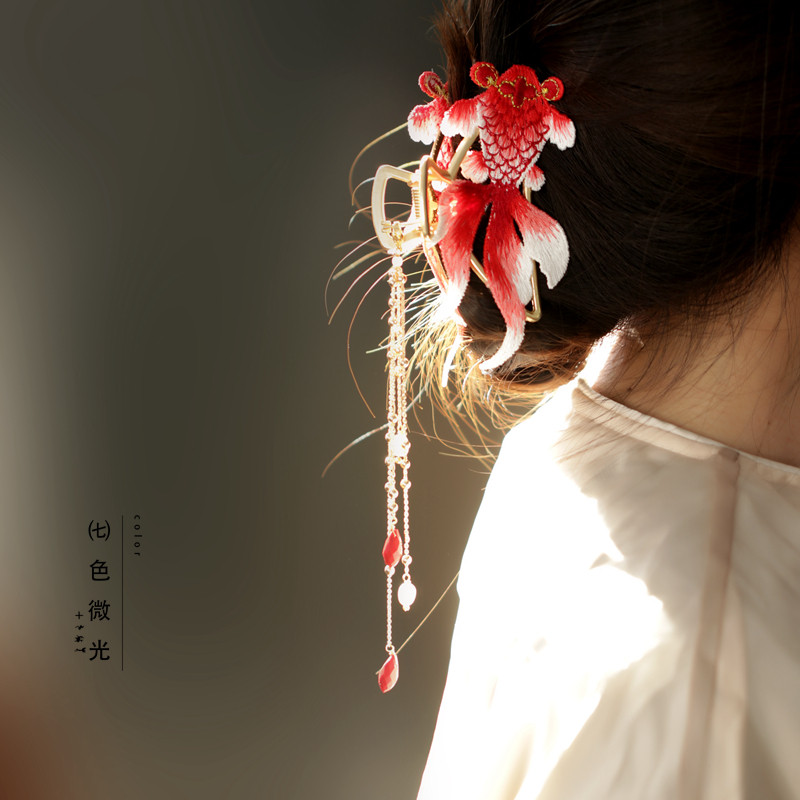 盘发头饰抓夹 红色锦鲤新年款发抓高级感 后脑勺夹子古典旗袍配饰