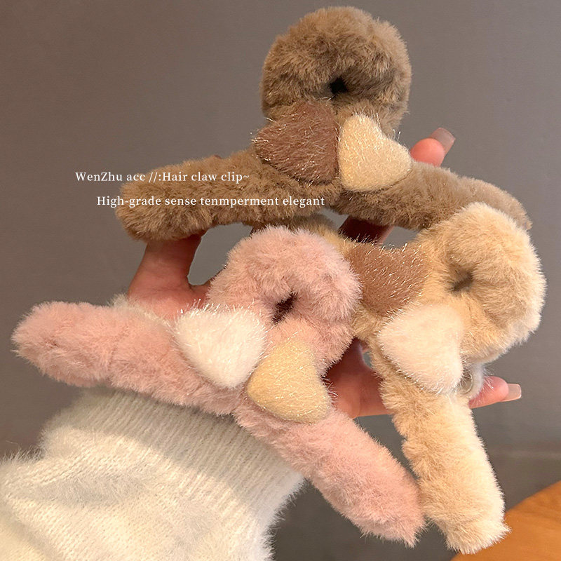 秋冬毛绒爱心发夹女后脑勺鲨鱼夹网红新款高级感大号夹子头饰抓夹