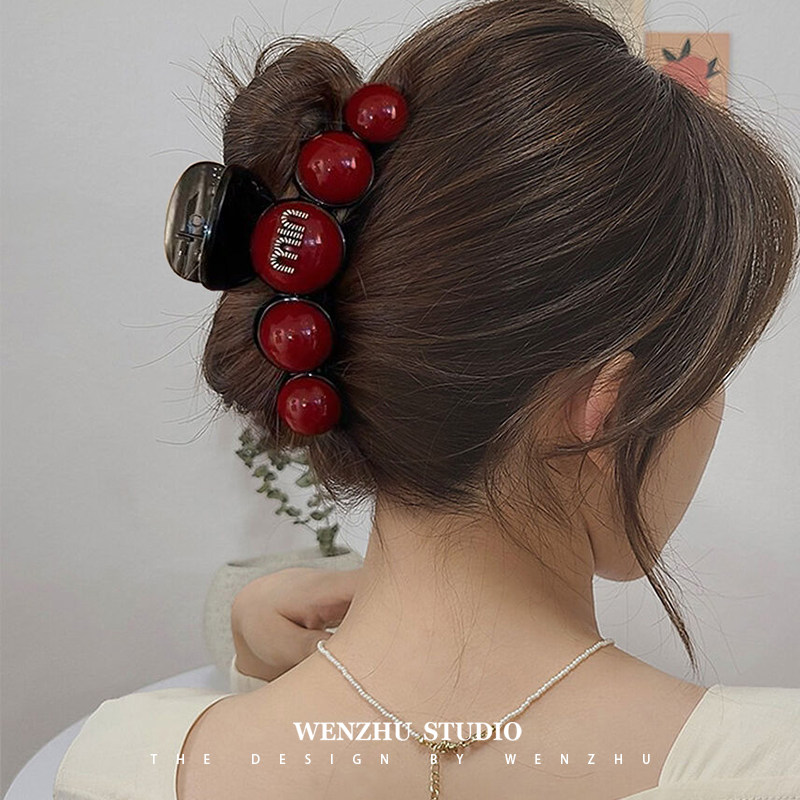 精致樱桃发夹女后脑勺半扎发卡2023新款高端中号鲨鱼夹子头饰抓夹