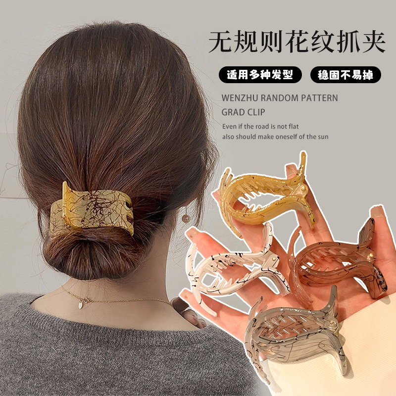 小众曲线发夹女后脑勺韩国ins简约鲨鱼夹高级感盘发夹子头饰抓夹