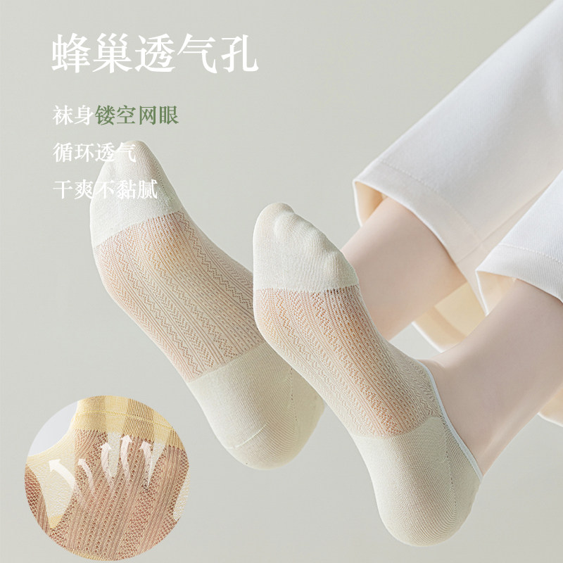 禾素时代莫代尔冰袜女隐形船袜网眼透气夏季超薄款防滑短袜不掉跟