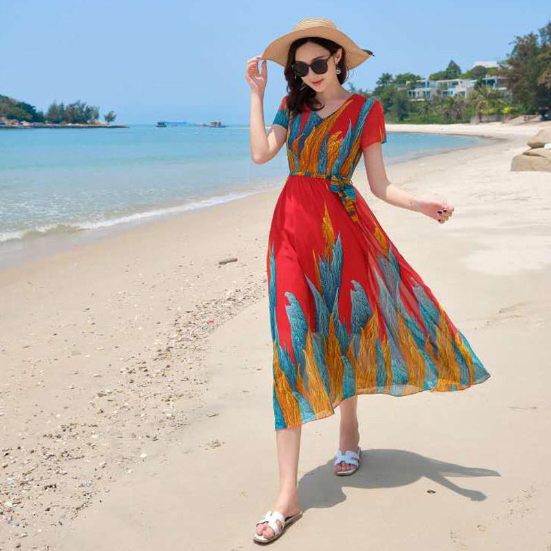 泰国旅游雪纺连衣裙夏新款气质显瘦海南三亚巴厘岛海边度假沙滩裙