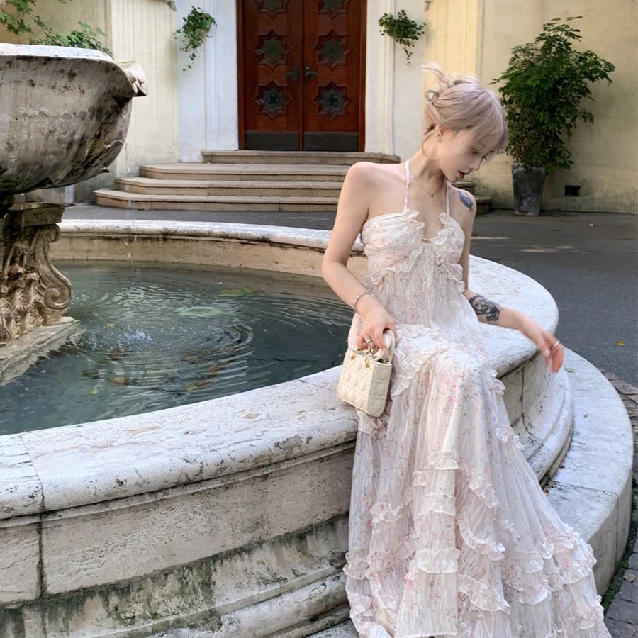 泰国海岛沙滩度假连衣裙海南三亚海边拍照吊带裙大理丽江法式长裙