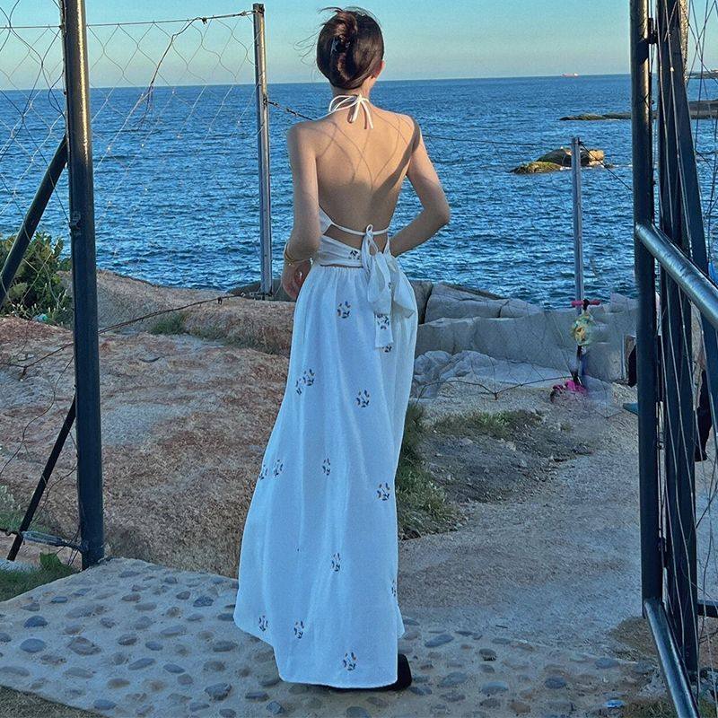 泰国三亚旅游穿搭白色露背沙滩裙女超仙波西米亚风海边度假连衣裙