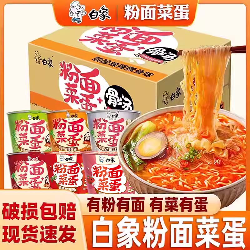 白象粉面菜蛋桶装泡面金汤肥牛卤蛋粉丝面速食整箱方便面袋装夜宵