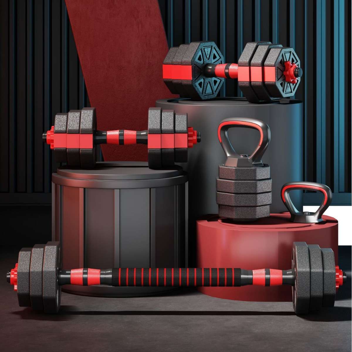 八角环保哑铃男士家用健身器材锻炼可调节套装组合杠铃壶铃女包胶