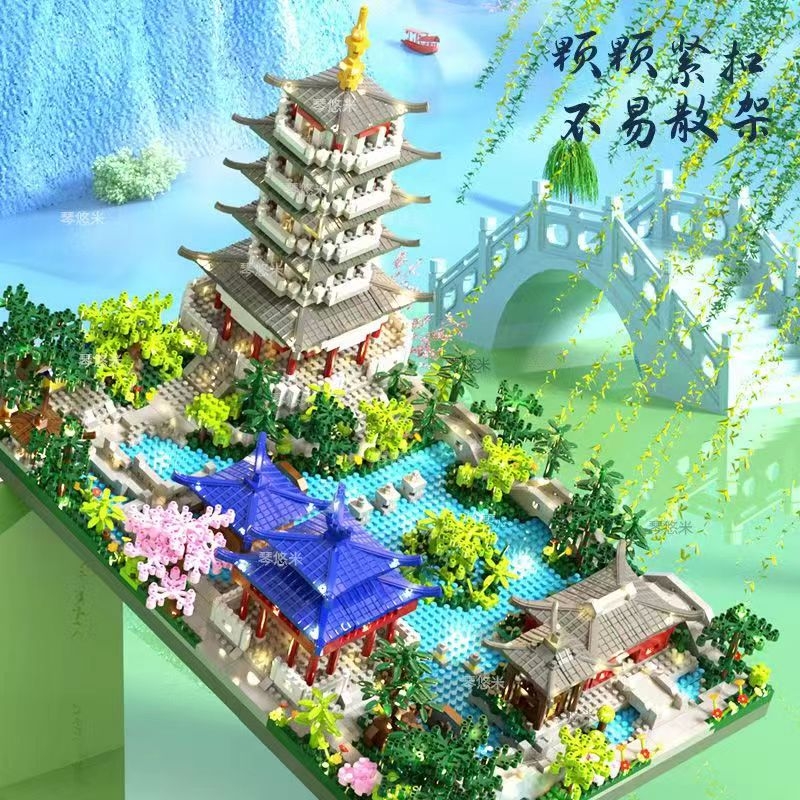 兼容乐高杭州西湖园林积木高难度建筑拼图模型儿童男女孩拼装玩具