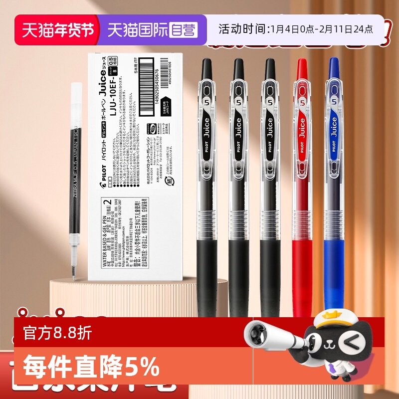 Pilot百乐Juice果汁笔0.5/0.38按动中性笔子弹头速干黑色替芯笔黑色中性笔红笔考试专用刷题官方旗舰店笔正品