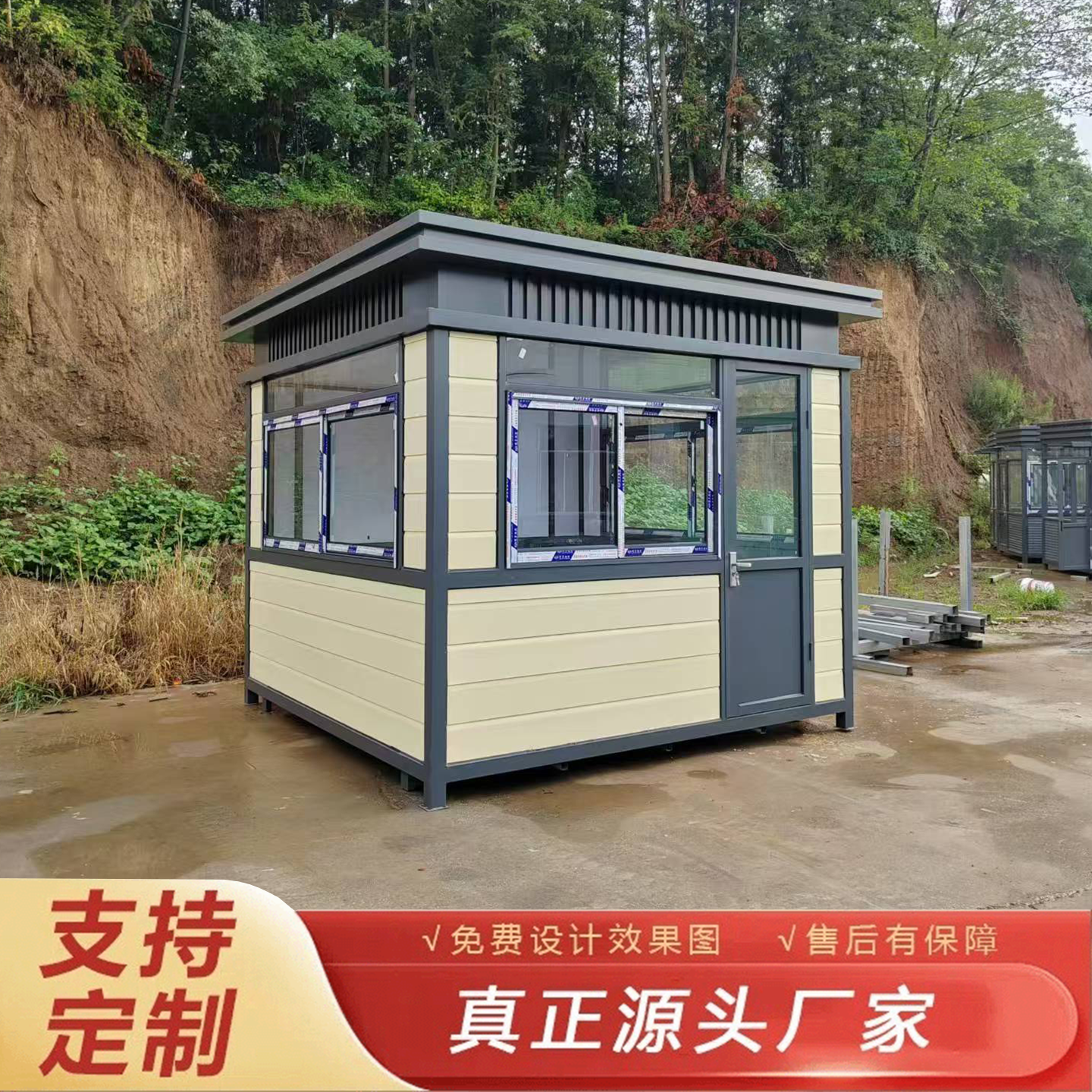 方型钢构岗亭保安亭物业值班室休息室站台岗亭工厂岗亭可定制移动