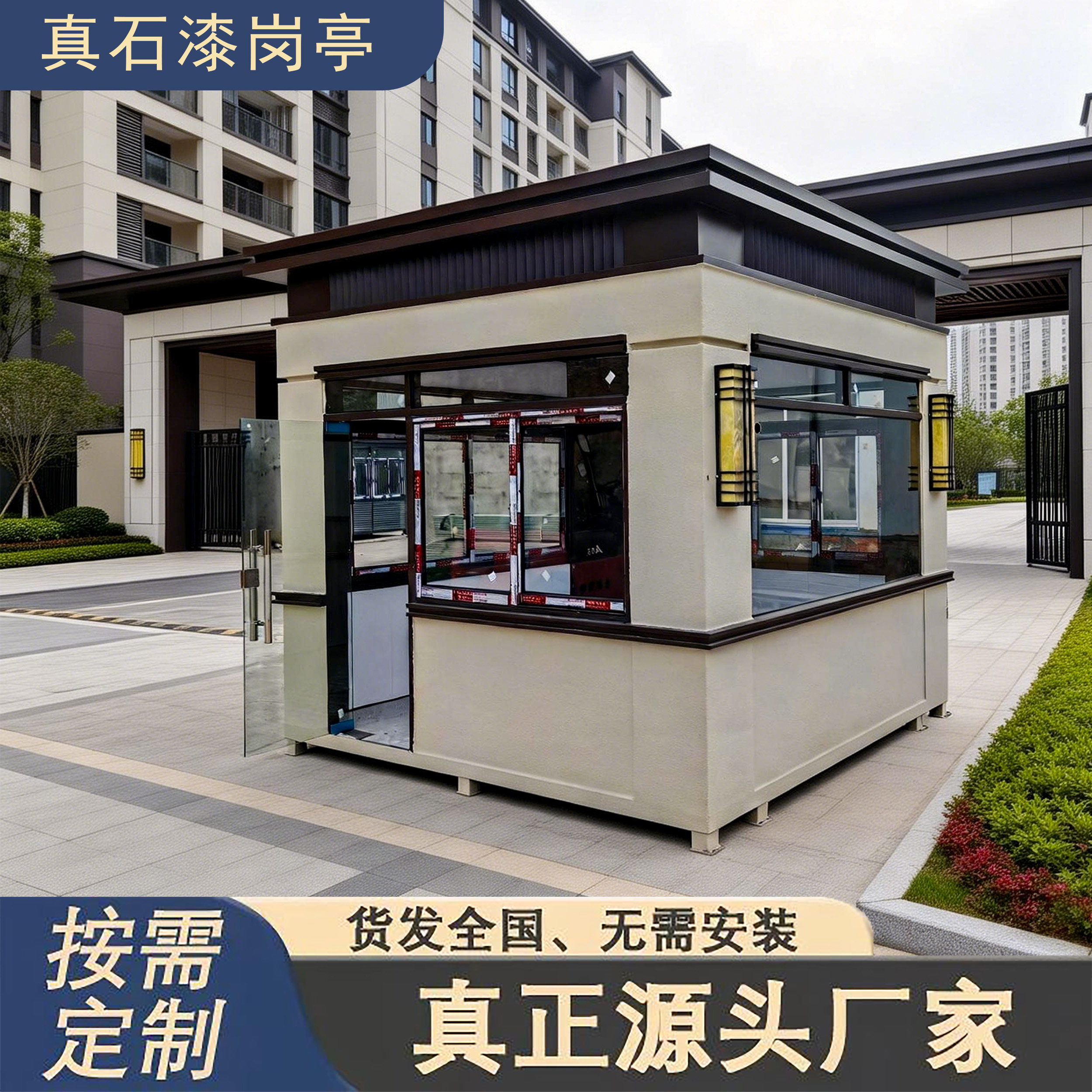 真石漆岗亭保安亭站岗户外成品可移动门卫室值班室不锈钢定制定金