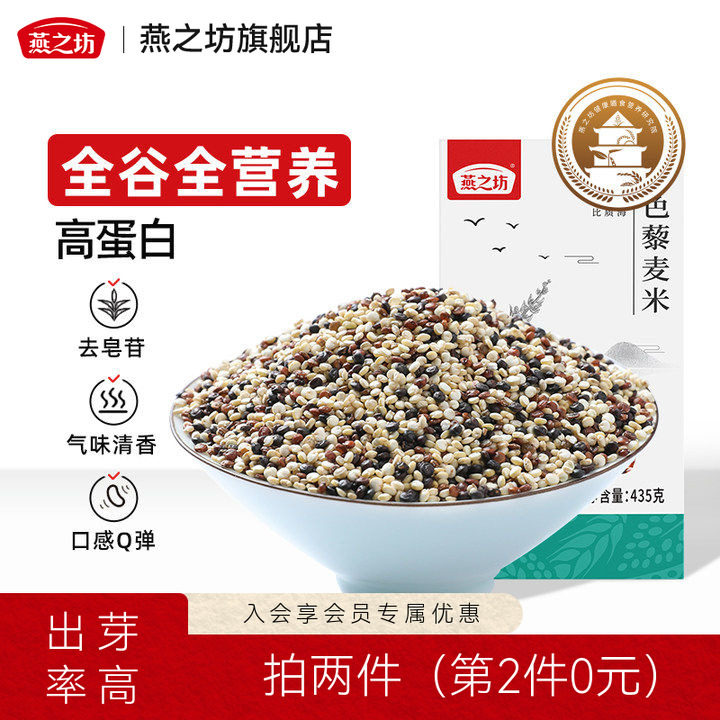 燕之坊三色藜麦青海混合红白黑免泡五谷杂粮粗粮饱腹真空盒装435g