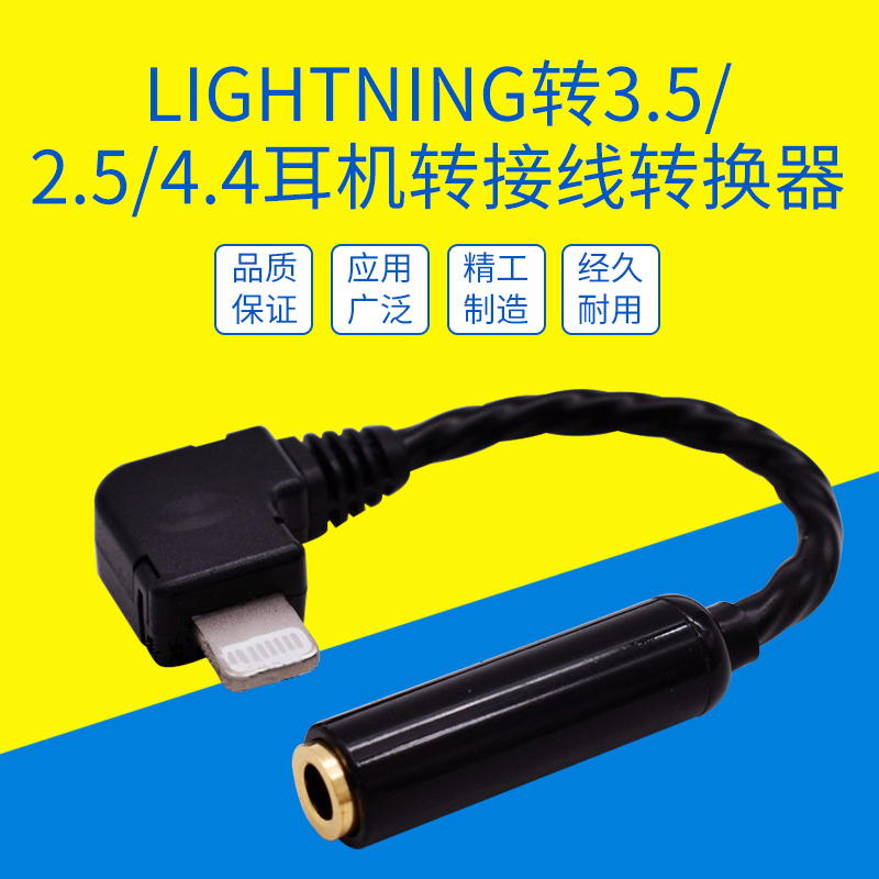 弯头MFI认证适用iPhone苹果13/12 XR 11 pro 7 max 8手机lightning转3.5/2.5/4.4母mm耳机转接头音频线转换线