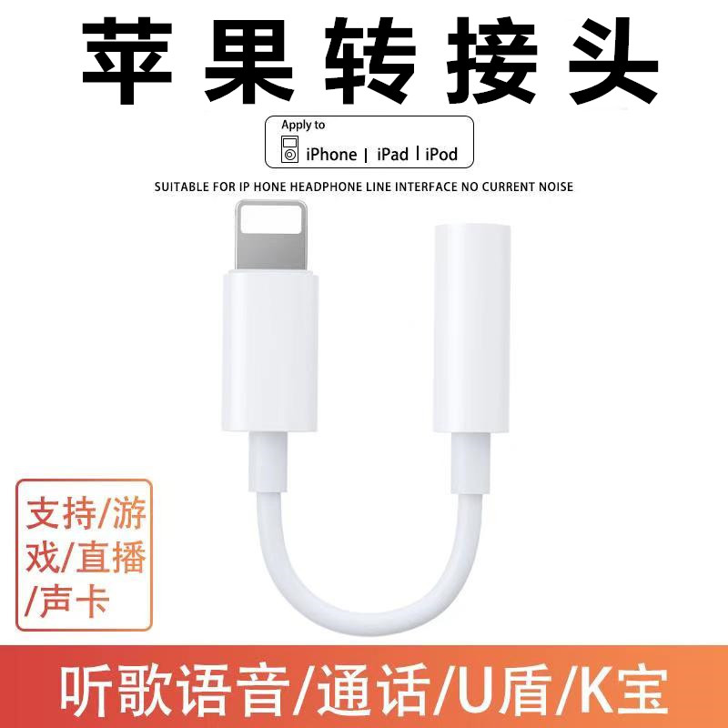 lightning转3.5mm苹果耳机转接头适用iphone7plus/8/x/xr/11/12/13 pro直播U盾7p转换器口手机xs/max线转换头