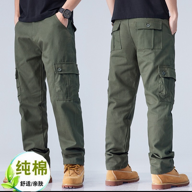 工装裤男士纯棉直筒宽松大码春秋款户外登山全棉耐磨休闲裤多袋裤