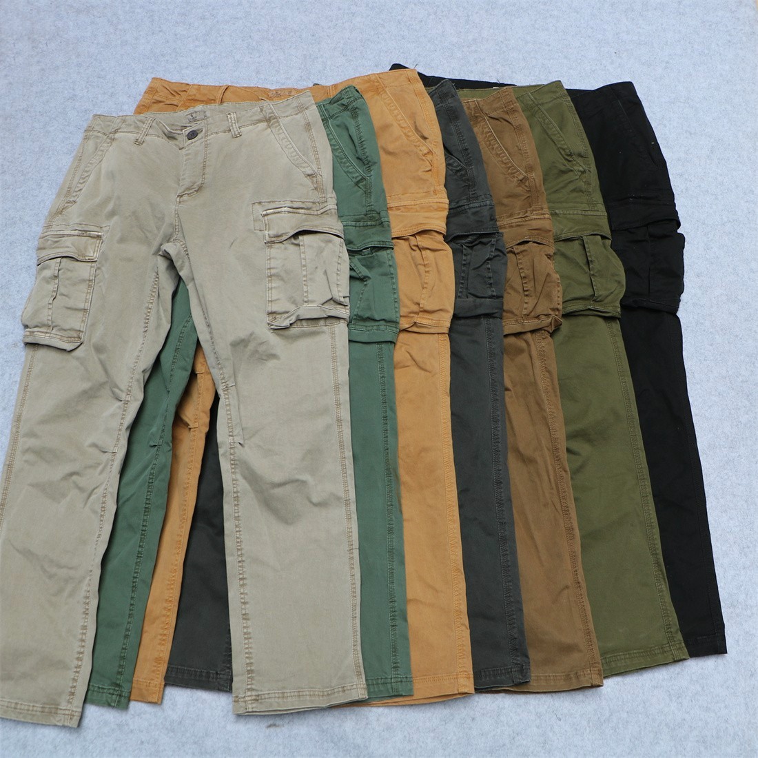 外贸 美式休闲纯棉多兜工装裤 重工水洗复古做旧微弹力多袋裤长裤