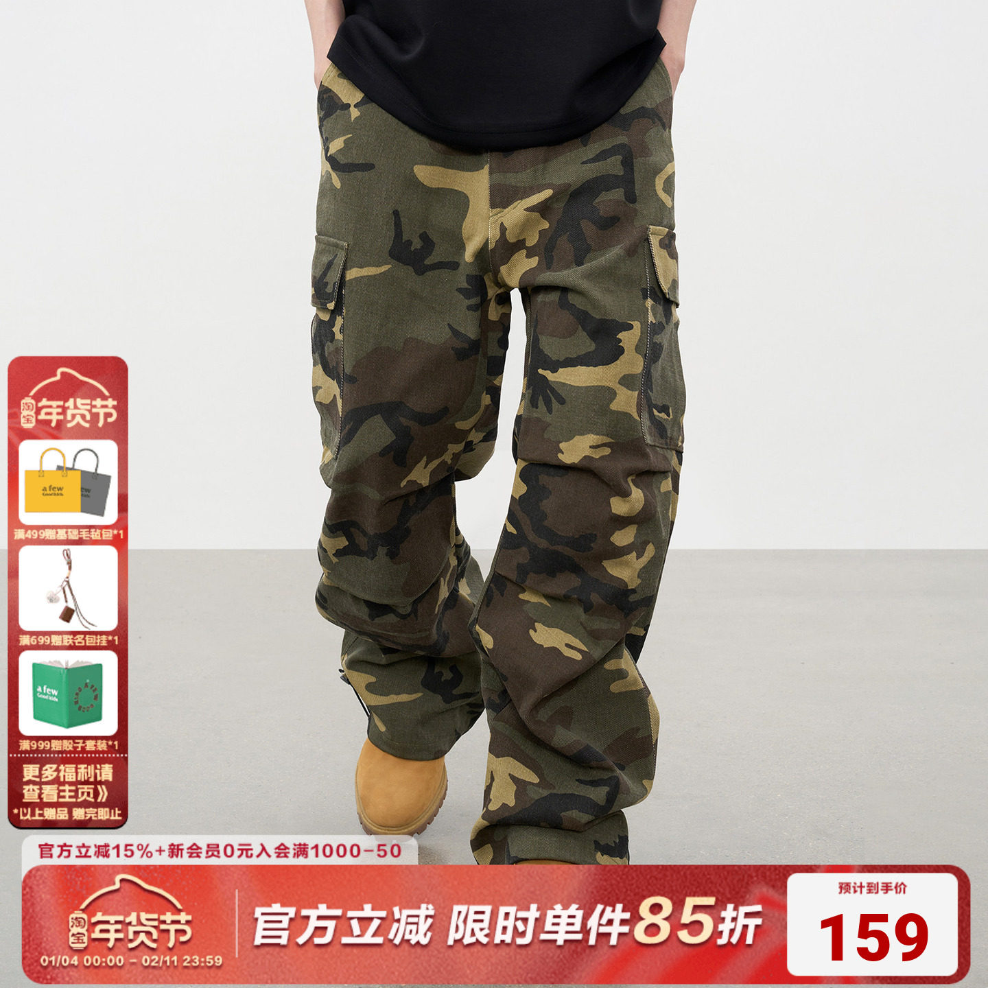 AFGK25SS美式复古多口袋褶皱迷彩工装裤直筒宽松休闲cargo长裤子