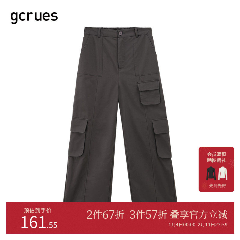 gcrues黑色美式工装裤女春秋2025新款高腰阔腿宽松休闲速干多袋裤