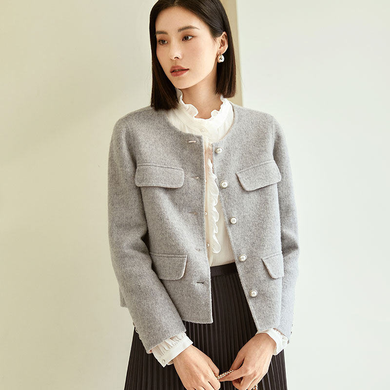 玳莎圆领短外套女时尚秋冬季新款小香风简约小个子羊毛双面呢大衣
