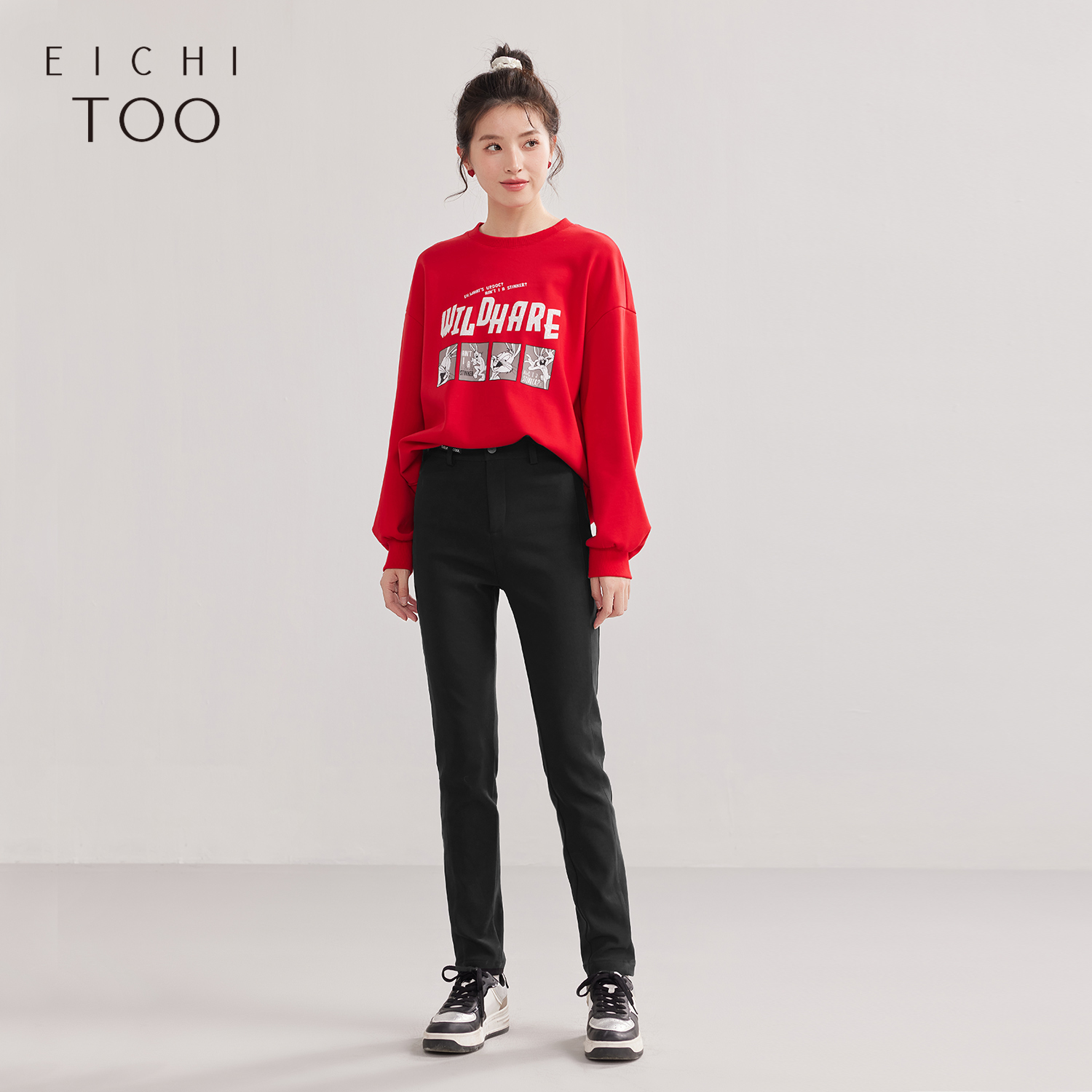【0元入会1件9折】伊芙丽outlets店黑色加绒牛仔裤铅笔裤冬保暖女